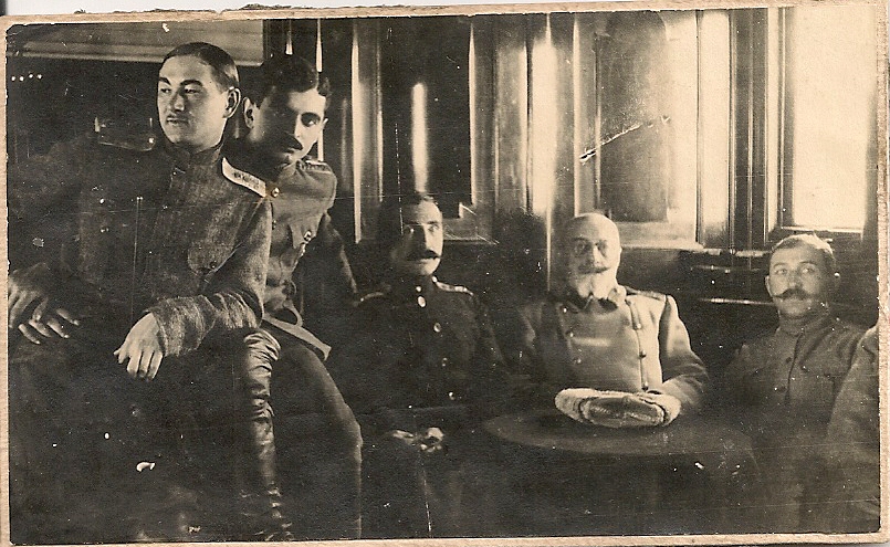 У меня есть предположение, что Ваш родственник мог быть откомандирован из Черниговского полка к землякам Северцам, причем носил форму того полка в котором числился т.е. Черниговцев. Отсутствие записей также может объясняться нахождением в Запасном полку (4-й Запасной кавалерийский полк ст. Лиски), болезнью, ранением и т.д. Возможно фотография выполнена на фронте, когда полки взаимодействовали друг с другом. Но это все мои предположения. Фото с улучшенным разрешением не позволяет с точностью атрибутировать, стоящего 2-м слева офицера (Алибекова), но по косвенным признакам: гусарскому зигзагу на погоне и белому просвету, угадывается Черниговский офицер, в подтверждение этому под углом на клапане нагрудного кармана видится знак 17 гусарского Черниговского полка.